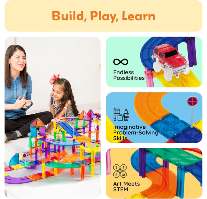 The Hiwawind Magnetic Building Blocks Princess Toys set is designed for creative and educational play. Featuring strong magnets and durable ABS plastic, this set encourages STEM learning, problem-solving, and fine motor skill development. With vibrant colors and princess-themed designs, it provides endless building fun for kids. Perfect for Montessori learning, sensory play, and birthday gifts, this set is ideal for children ages 3 and up.