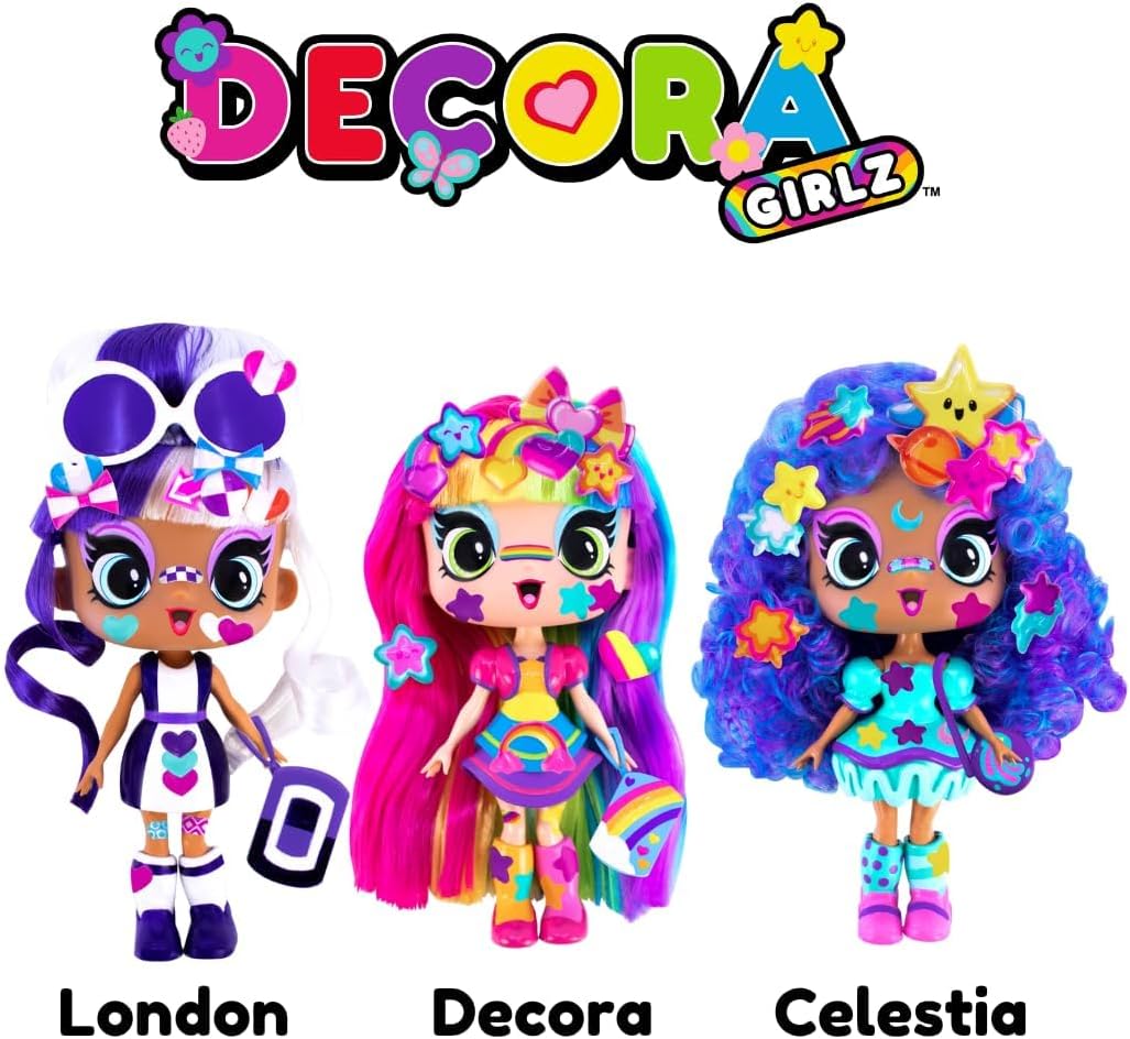 DECORA GIRLZ 5″ Dolls Set includes Kat, Luna, and Heather, designed to inspire imaginative play. Each doll comes with stylish outfits, colorful stickers, and accessories, making it perfect for kids ages 4 and up. Ideal for birthdays or creative playtime, this set offers endless fun and fashion adventures for young minds.