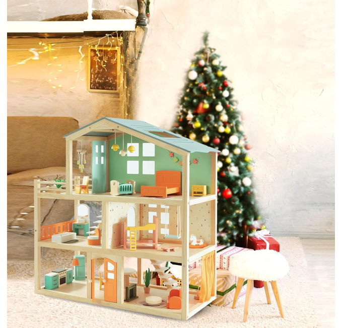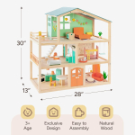 FUN LITTLE TOYS Wooden Dollhouse Furniture Set features 22 detailed pieces crafted from durable wood, perfect for imaginative play. With vibrant pink accents and classic designs, each set fits seamlessly into most dollhouses. Ideal for kids who love decorating and storytelling, this charming set encourages creativity and fine motor skills. A delightful addition to any playroom from Toys Circuit.