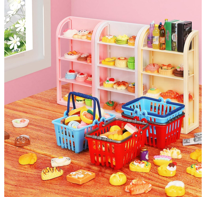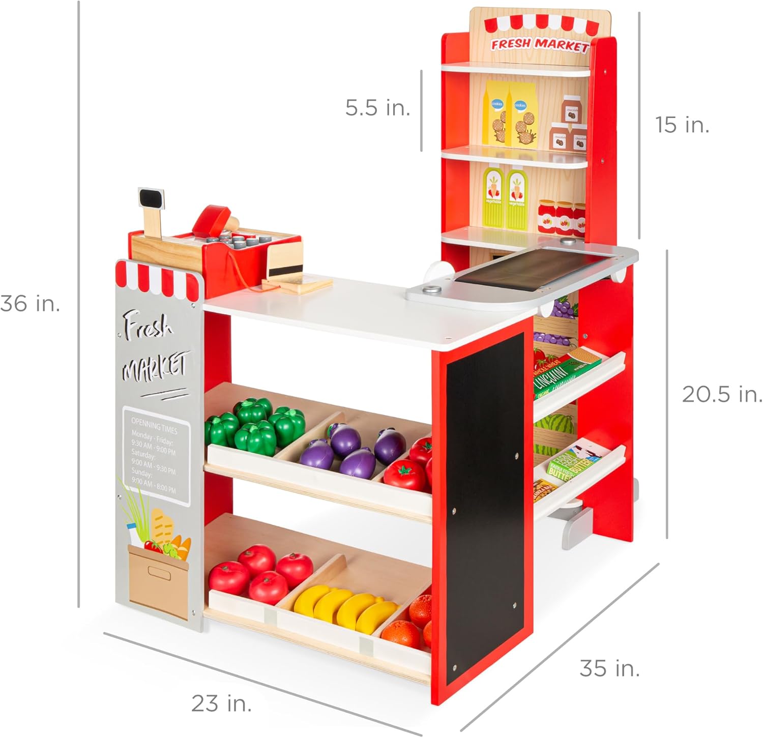 Melissa and Doug Fresh Mart Grocery Store Play Food Set offers a fun and interactive way for kids to role-play shopping and food preparation. This set includes a variety of grocery items, perfect for building motor skills, social interaction, and creativity. Made from durable, kid-safe materials, it’s ideal for children ages 3 and up. A great addition to any play kitchen or grocery store setup, encouraging imaginative play and learning.