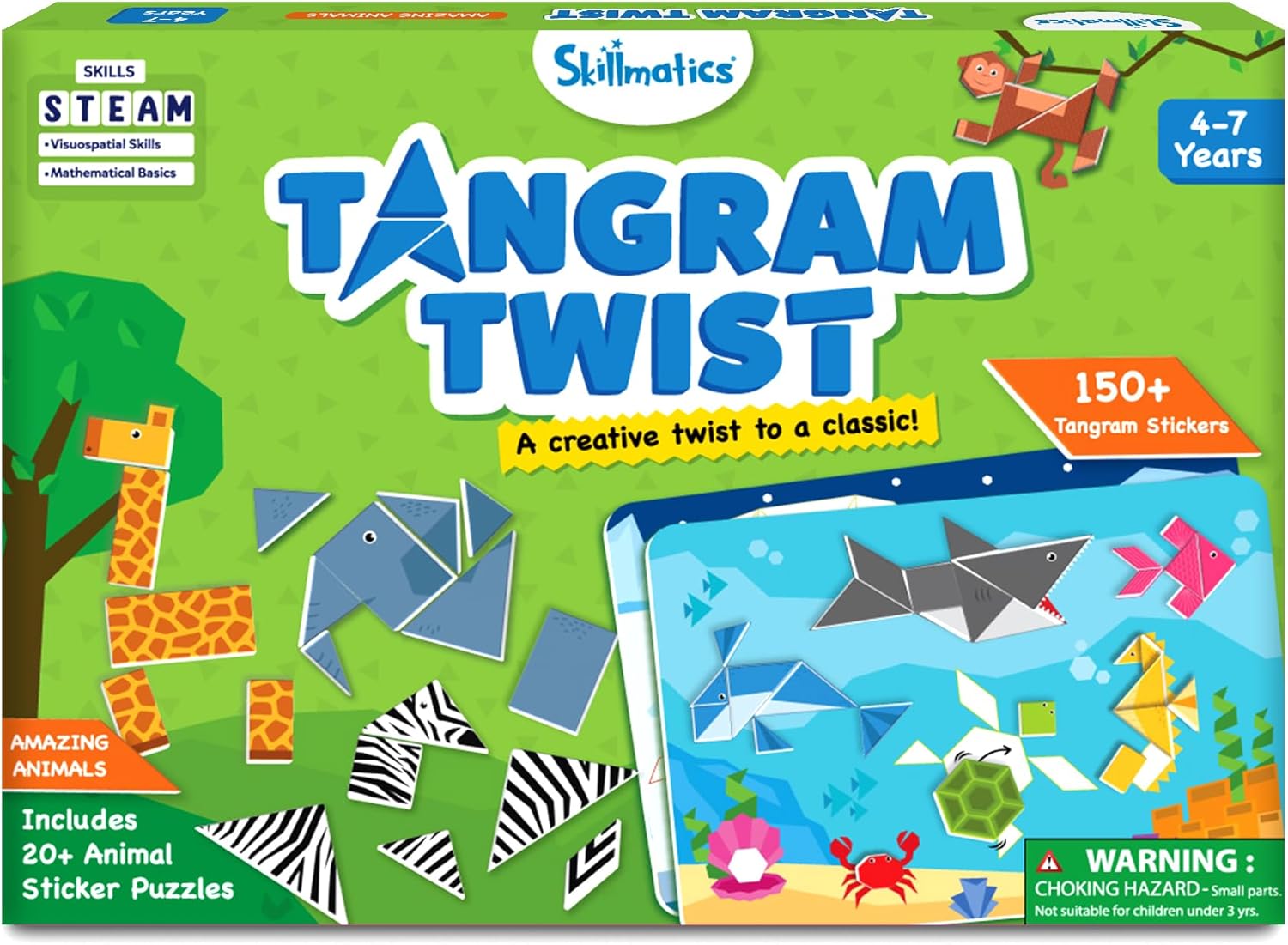 Skillmatics Tangram Puzzles – Animals is an engaging STEM toy that promotes creativity and problem-solving. With over 150 foam tangram stickers, kids can create animal shapes and figures while improving spatial awareness. Perfect for boys and girls ages 4 and up, this educational learning activity enhances fine motor skills and is ideal for arts and crafts sessions. A great gift for young learners!
