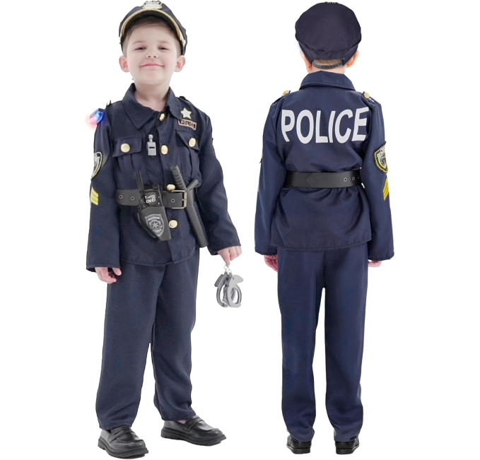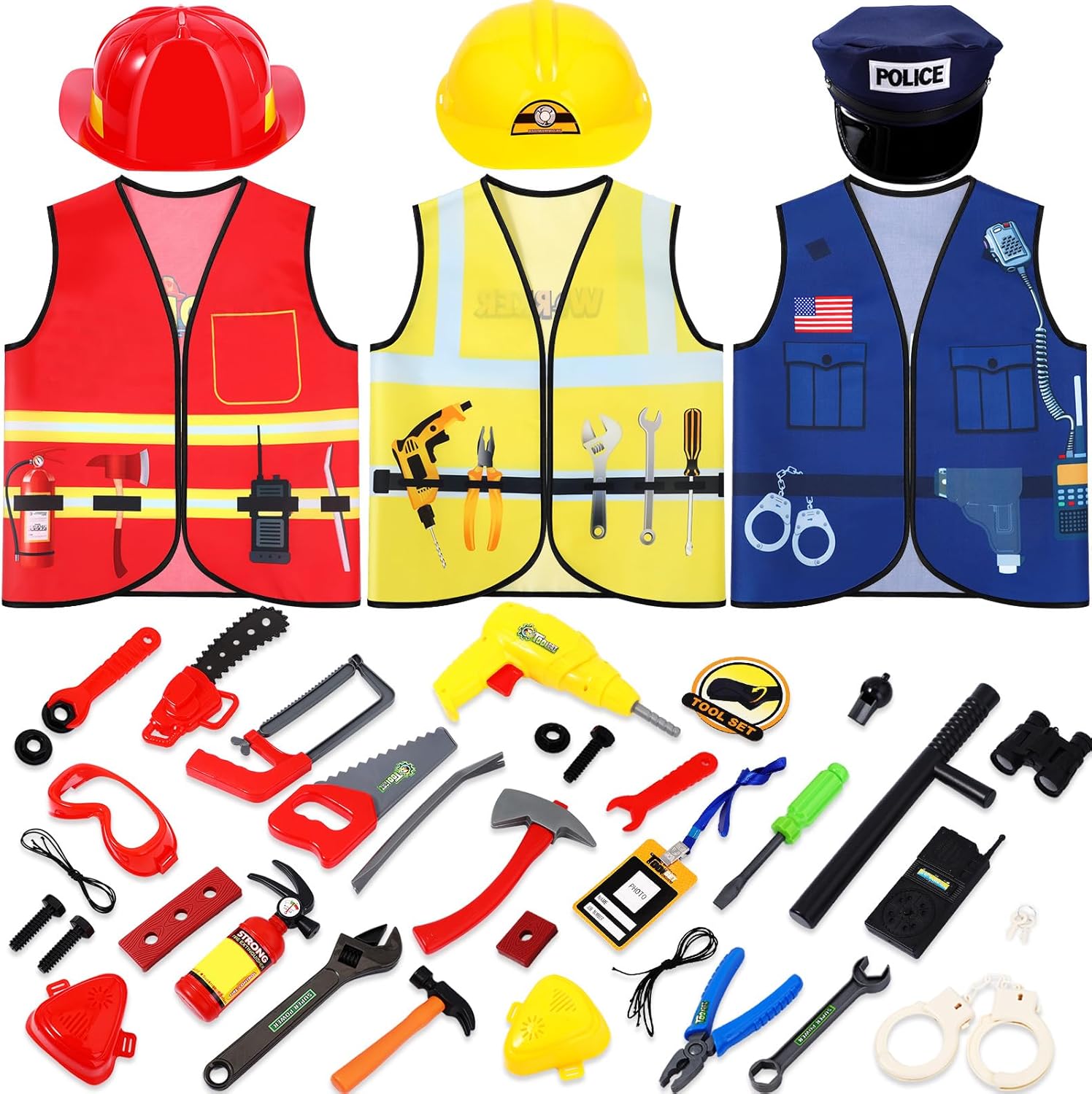 Lesheng Kid’s Fireman Firefighter Costume Set includes realistic firefighter accessories such as a helmet, vest, and toy fire extinguisher. Perfect for boys and girls, it provides hours of imaginative play for birthday parties, Halloween, or dress-up fun. This costume set encourages creativity and role-playing, making it an ideal gift for young aspiring firefighters.