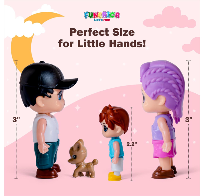 Includes: 4 Sets of Girl Clothes, 4 Sets of Boy Outfits, 8 Pairs of Shoes