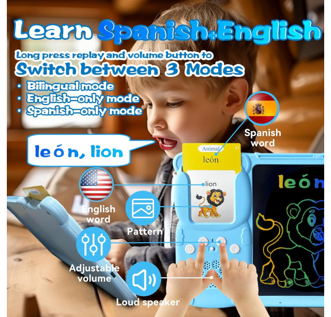Rufus AI Talking Flash Cards and Writing Tablet combines fun and education in one interactive device. This bilingual toy helps children learn 510 sight words in both English and Spanish while offering a creative drawing and sketching experience. Designed for toddlers and kids, it supports early literacy, language development, and autism-friendly play. Perfect for enhancing cognitive skills through engaging activities.