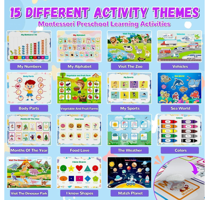 This set of 6 soft cloth books is designed to stimulate your baby’s early development. Made from non-toxic, durable fabric, each book features vibrant colors and interactive elements to engage your little one’s senses. Ideal for teething, grasping, and exploring, these books are machine washable and safe for infants. Perfect for early learning and sensory play.