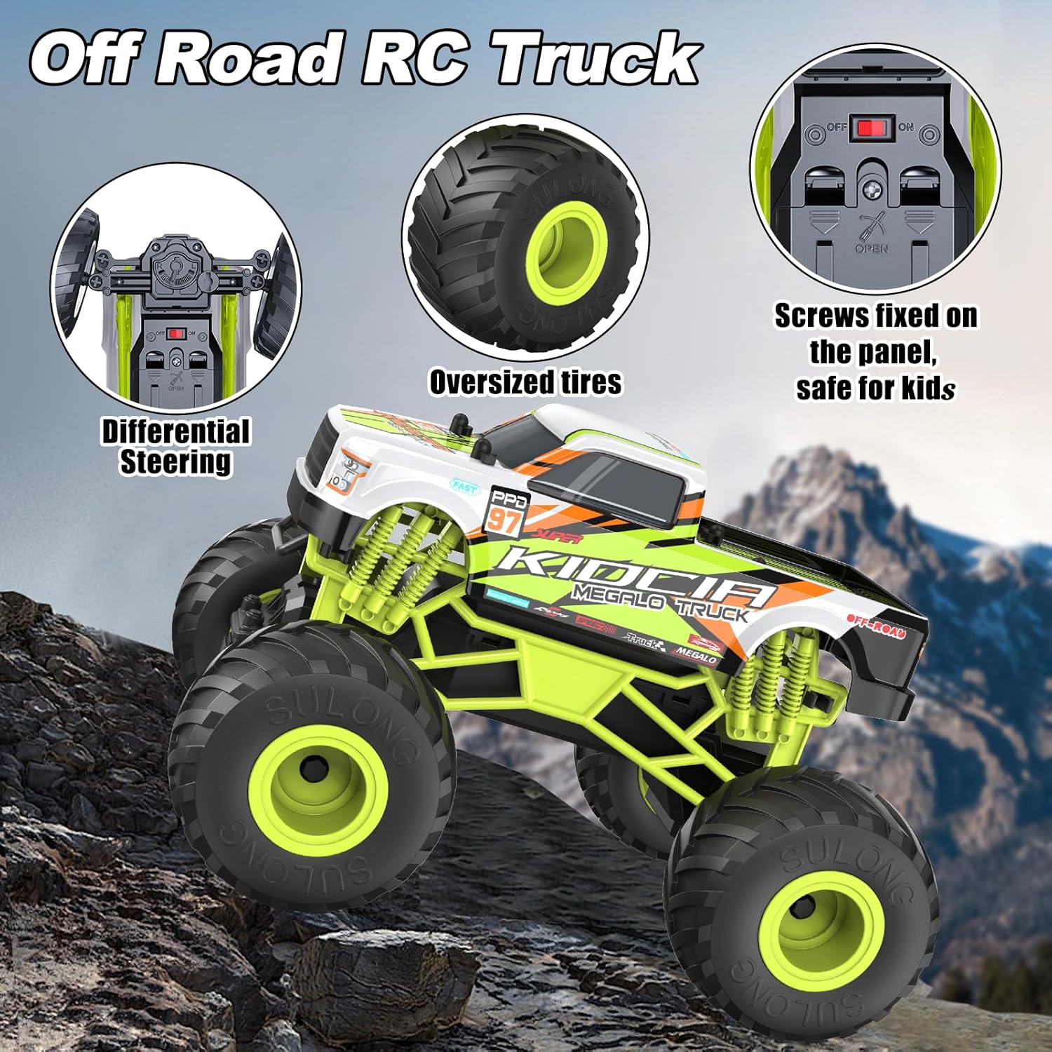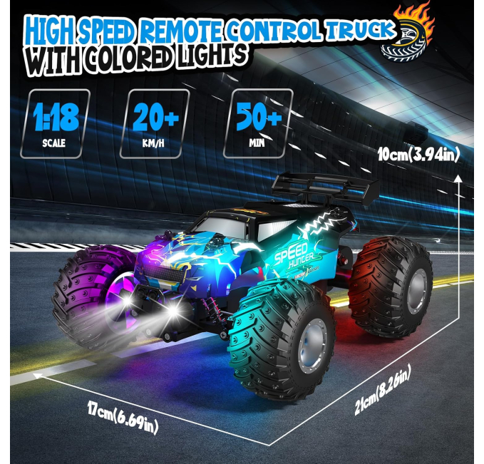 Hielse Remote Control Car offers an all-terrain 2-motor truck designed for kids and beginners. With a speed of 10KM/H, it features a durable build, LED lights, and a rechargeable battery for extended playtime. The 2.4GHz remote ensures smooth control, making it perfect for outdoor adventures. A great gift for Christmas, this truck provides both fun and excitement for young drivers.