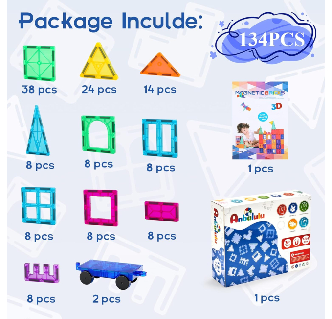 Toys Circuit 100PCS Magnetic Blocks STEM Building Set sparks creativity and hands-on learning for kids. Designed with strong magnets and high-quality ABS plastic, these blocks allow children to build structures while improving problem-solving skills. Ideal for early education, this Montessori-inspired toy enhances fine motor skills, spatial awareness, and STEM development. A perfect gift for boys and girls, encouraging endless fun and imaginative play.