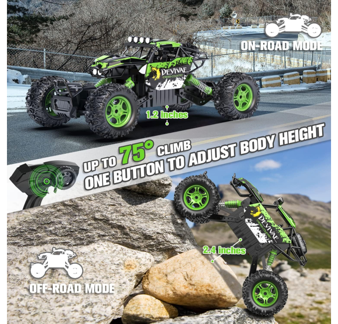 The AONEPTR All Terrain RC Truck delivers powerful performance with a top speed of 20 km/h. Equipped with two rechargeable batteries and bright body lights, this 4WD monster truck is perfect for both indoor and outdoor adventures. Its all-terrain design ensures fun on various surfaces, making it an ideal gift for boys who love thrilling remote control cars.