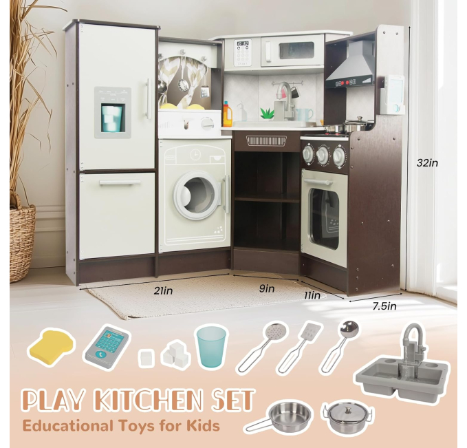 Best Choice Products Pretend Play Corner Kitchen is a realistic, interactive toy set designed for kids. This wooden playset features lights, sounds, and a working ice maker for added fun. With a stove, sink, and hood, it provides an engaging cooking experience. Ideal for children aged 3+, it encourages creativity and imaginative play while improving motor skills. Perfect for boys and girls who love roleplay and pretend cooking!