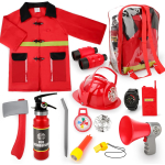 deAO Fireman Costume for Kids includes 13 pieces of firefighter gear for imaginative play. The set features a realistic fire extinguisher, helmet, and other accessories, encouraging children to engage in fun role play. Perfect for boys and girls aged 3-7 years, it helps develop creativity and social skills. Ideal for birthday gifts or pretend play sessions.