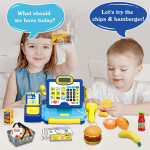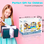 The deAO Toy Cash Register Set is perfect for pretend play, featuring a 3-in-1 coffee machine, calculator, and play money. This interactive toy helps children develop math and social skills while having fun. It includes a working water outlet, play food, and is ideal for both boys and girls. Perfect for birthday gifts or learning activities.