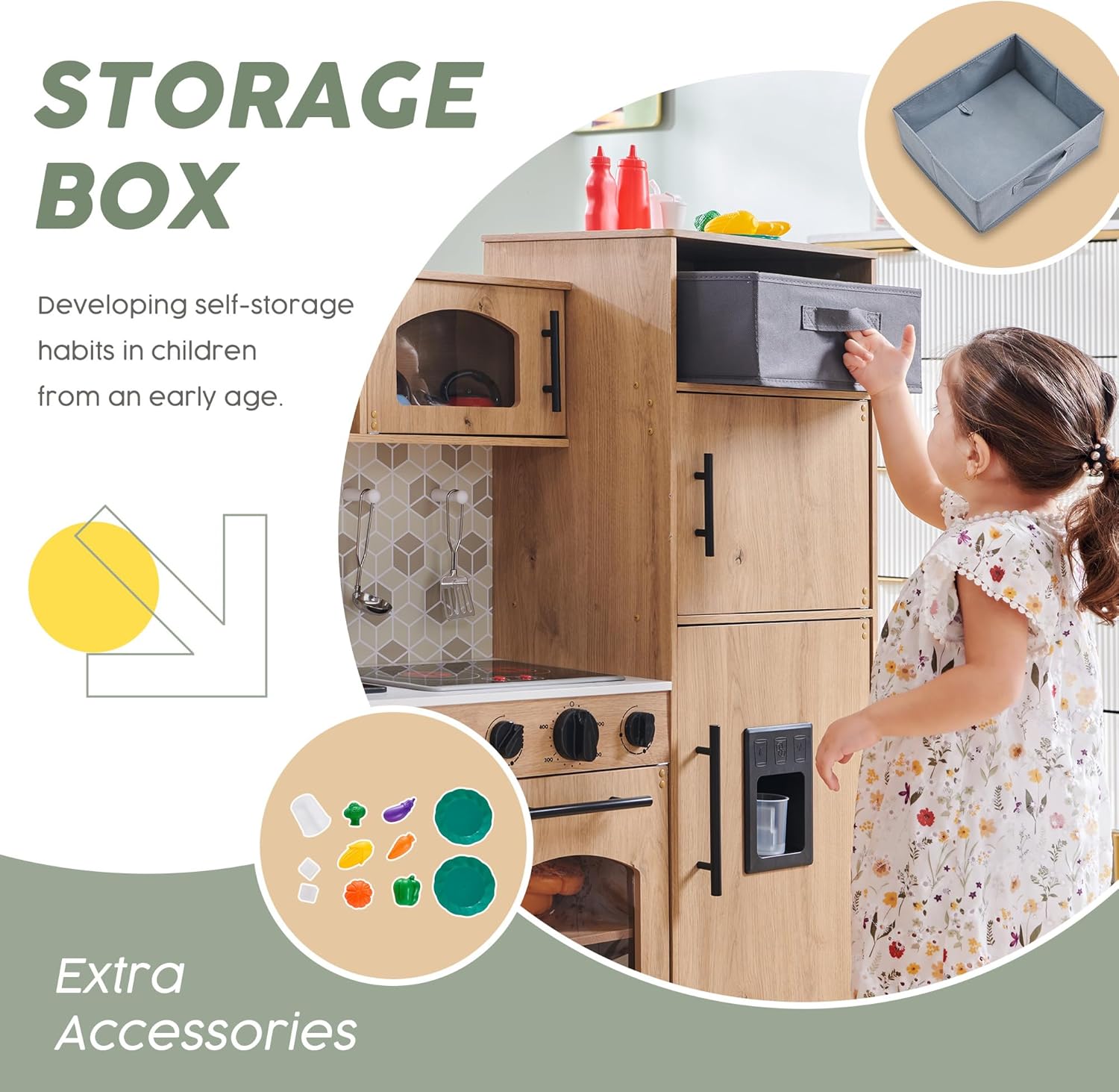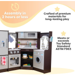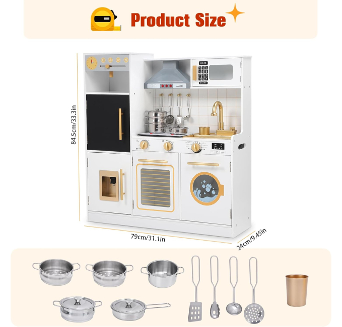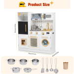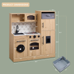 HONEY JOY Corner Kids Kitchen Playset features a wooden construction with realistic kitchen details, including a microwave, refrigerator, water dispenser, and range hood. Designed for toddlers, this playset encourages imaginative pretend play while enhancing motor skills. Ideal for both boys and girls, it offers hours of fun cooking and role-playing adventures. Perfect for indoor use and helps develop creativity and social skills.