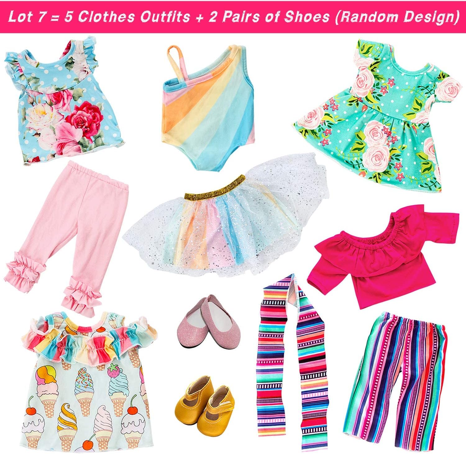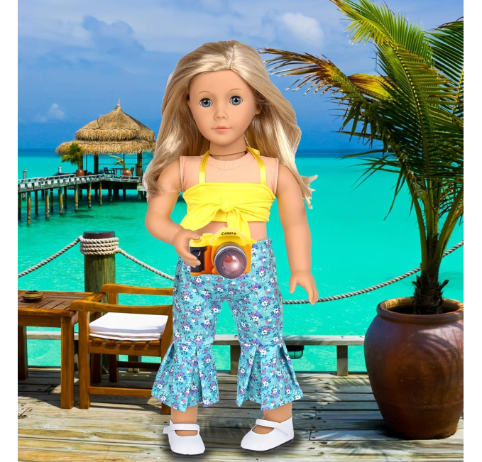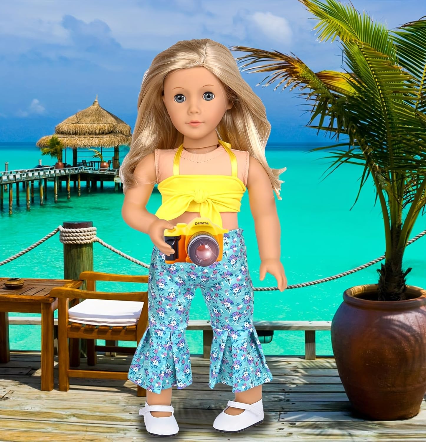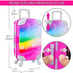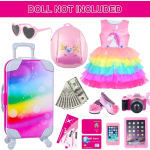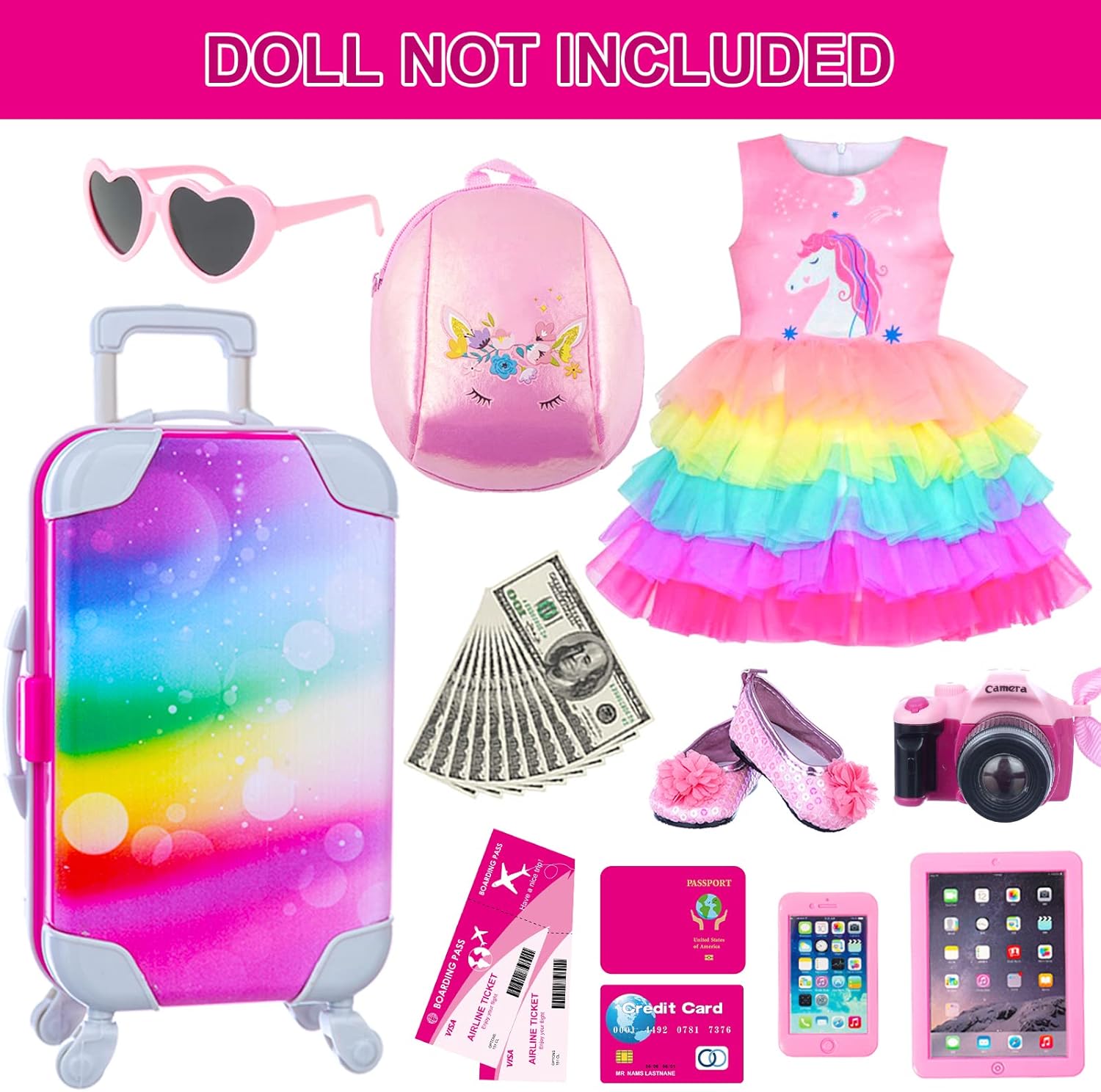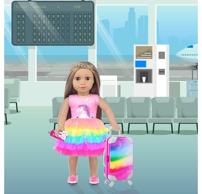 K.T. Fancy 23 PCS American 18 Inch Doll Luggage Set is a perfect travel companion for your doll. This set includes a colorful rainbow suitcase, matching accessories like a camera, phone, neck pillow, and more, offering everything your doll needs for an adventure. Ideal for imaginative play and a great addition to any doll collection, this set is perfect for kids who love role-playing travel scenarios.