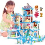 The OCTERIC Doll House for Girls features 10 spacious rooms with a beautiful blue design. This playhouse includes dolls, puppies, furniture, and accessories, offering endless fun and imaginative play. With LED light features, it brightens up playtime and creates a magical atmosphere. Perfect for girls aged 3 to 10, this gift idea sparks creativity and provides hours of entertainment. A wonderful addition to any child’s toy collection!
