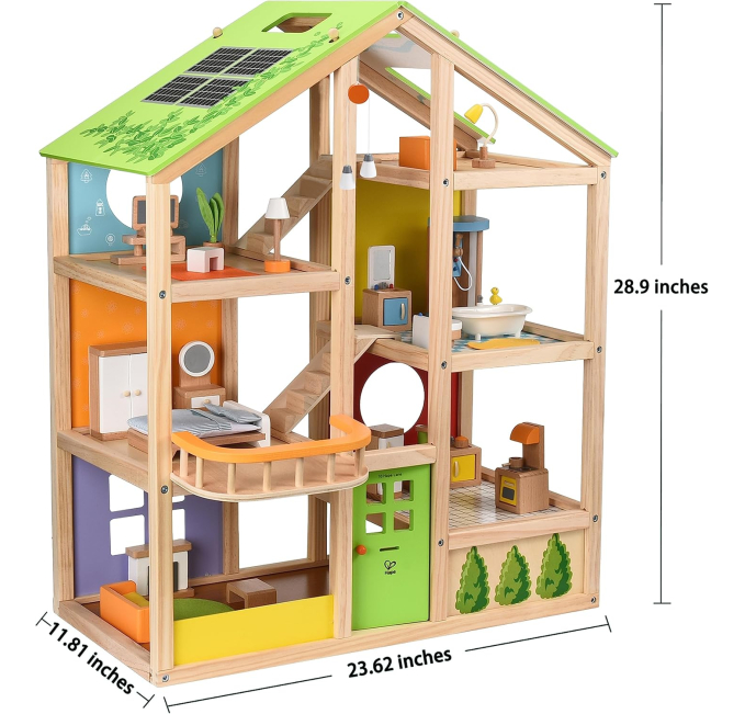 The ROBUD Wooden Dollhouse for Kids offers a vibrant and engaging play experience with detailed furniture and charming rooms that inspire imaginative storytelling. Crafted from durable wood and designed for safe play, this dollhouse is ideal for toddlers and young children. It promotes creativity, role-play, and motor skills development. With its colorful design and fun accessories, it makes a perfect gift for birthdays or holidays.