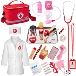 Rufus AI Doctor Kit for Kids includes 34 pieces of realistic medical tools like a stethoscope, thermometer, and medical storage bag. This fun and interactive set encourages creative role play, helping toddlers develop social and motor skills. Perfect for boys and girls aged 3 to 5, it’s ideal for birthdays, holidays, and educational activities.