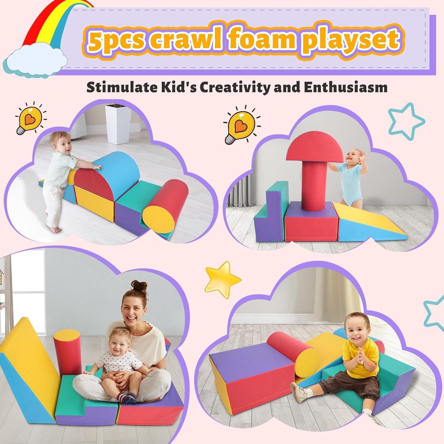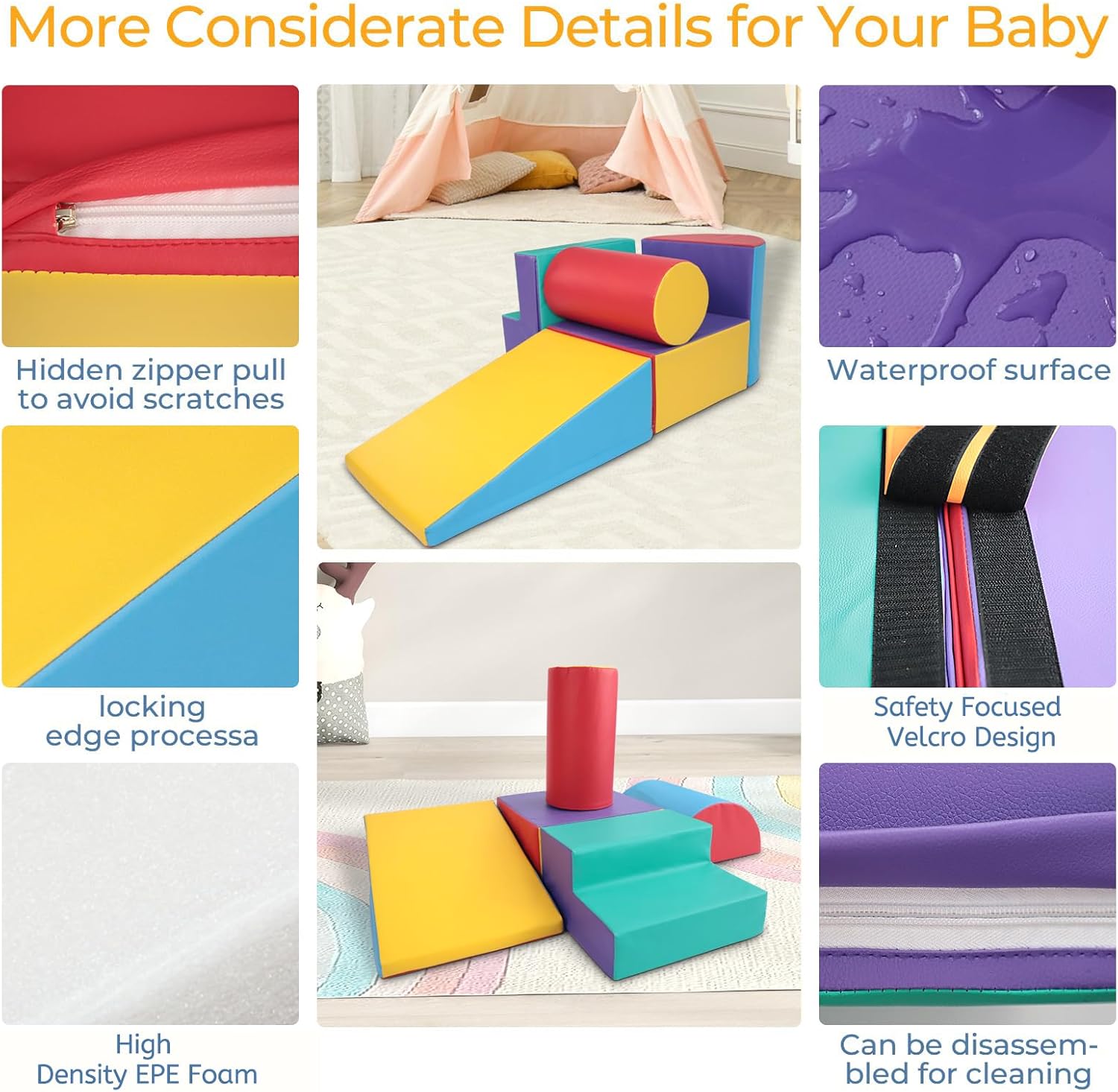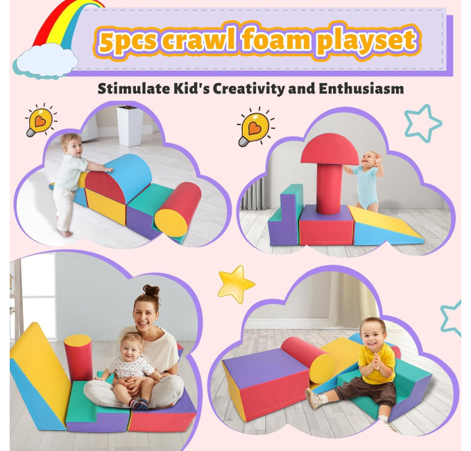 Soozier 7 Piece Soft Play Climbing Set is designed to provide toddlers with a fun and safe environment for indoor play. This colorful, modular play gym promotes crawling, climbing, and coordination skills. Perfect for kids ages 1-3 years, the soft PU leather material ensures comfort and safety while the durable design offers long-lasting use. Ideal for playrooms, this set encourages active play and development in young children.