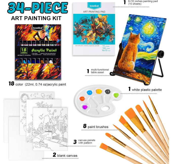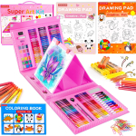 Soucolor 283 Piece Drawing Set is the ultimate art kit designed for kids and teens aged 4 to 12. This comprehensive set features a trifold easel, two drawing pads, a fun activity coloring book, and a variety of art supplies including crayons, pastels, and watercolor paints. Perfect for inspiring creativity and artistic expression, this drawing set provides everything young artists need to explore their imagination. Ideal for gifts and creative projects, it encourages skill development and hours of artistic fun.