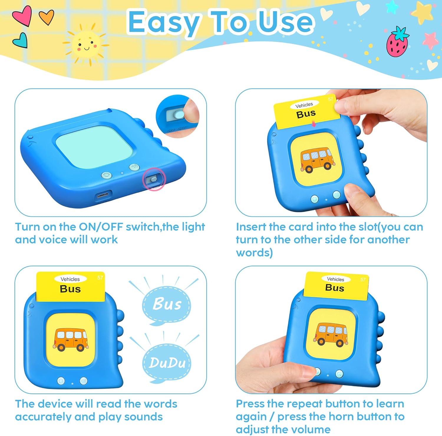 | Included Components | Flash cards and writing board |