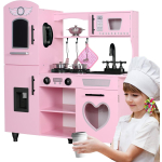 The TaoHFE Wooden Play Kitchen Set for Kids offers an interactive and realistic cooking experience. This toy kitchen includes a stove, sink, microwave, and refrigerator with working lights and sounds. Designed for toddlers, it promotes imaginative play and creativity while helping develop motor skills. Perfect for girls aged 3+, this kitchen set is the ideal gift for any little chef!