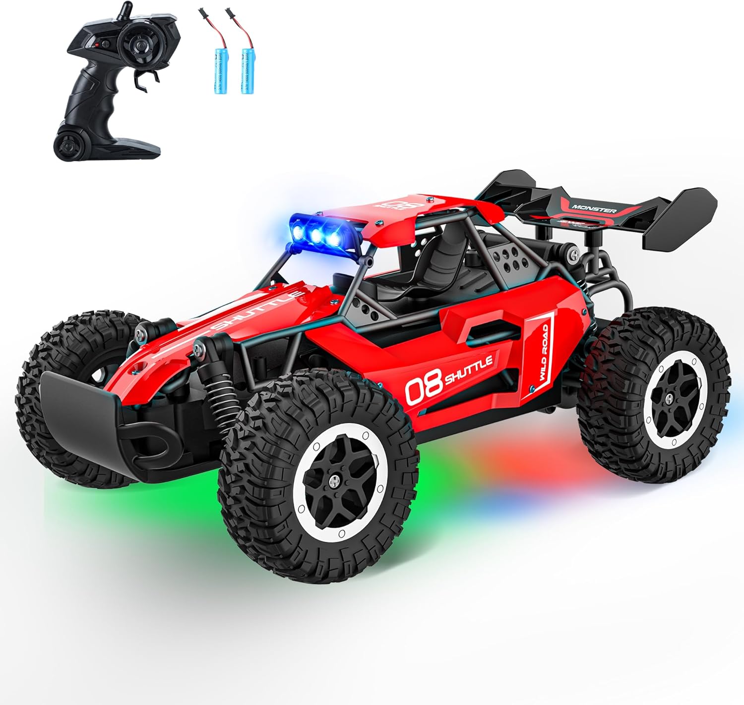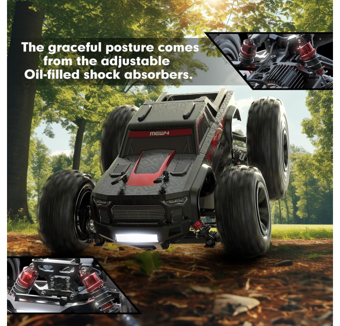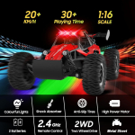 Tecnock RC Truck delivers high-speed action with a powerful 4WD system, reaching over 20 KM/H for exciting outdoor play. Its dual LED headlights enhance visibility for nighttime racing, while the 2.4GHz remote provides precise control with minimal interference. Built tough for all terrains, this rechargeable monster truck is a perfect gift for boys and teens who love backyard adventures.