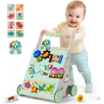 The TERRAMUS Dinosaur Baby Push Walker offers a fun and educational experience for toddlers. Made from high-quality wood, this Montessori-inspired activity toy promotes motor skills and coordination. The vibrant dinosaur design keeps little ones engaged while encouraging independent walking. Ideal for boys and girls, it makes a great developmental gift.
